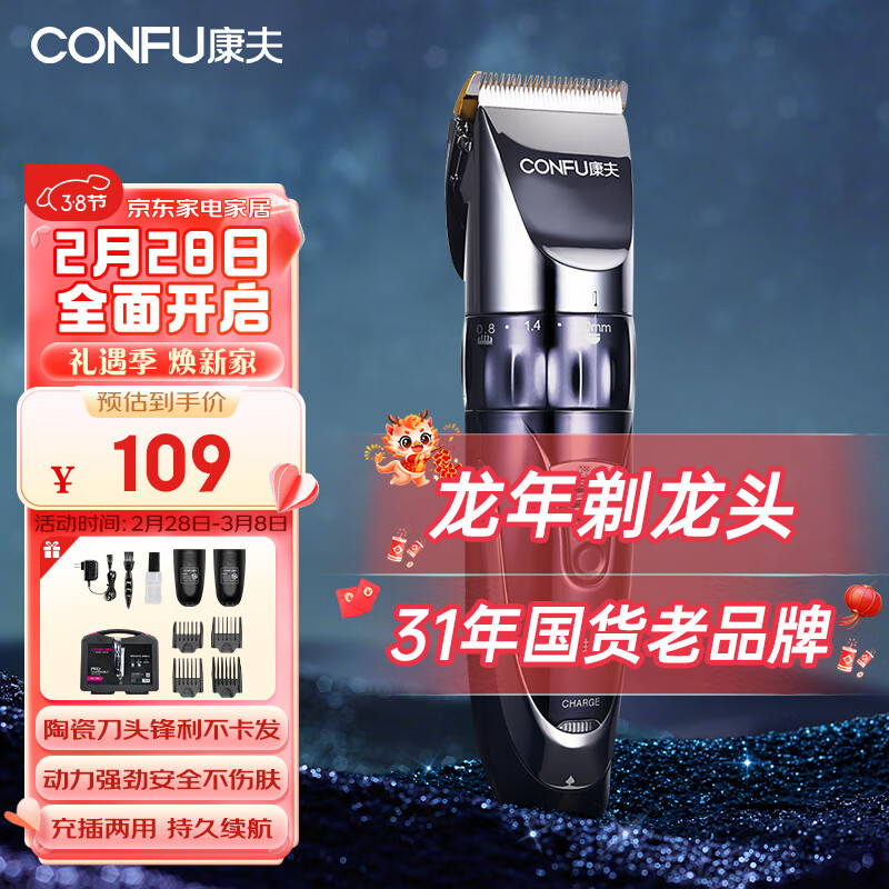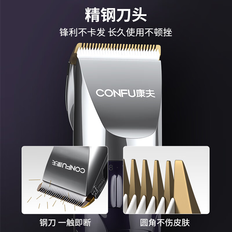 康夫(CONFU)降噪电推子剃头理发器电动理发推子专业理发工具全套成人电推剪家用儿童美发剪刀 KF-T90价格:109.00元!