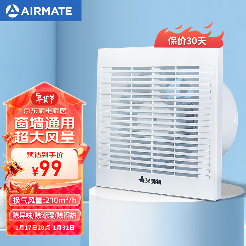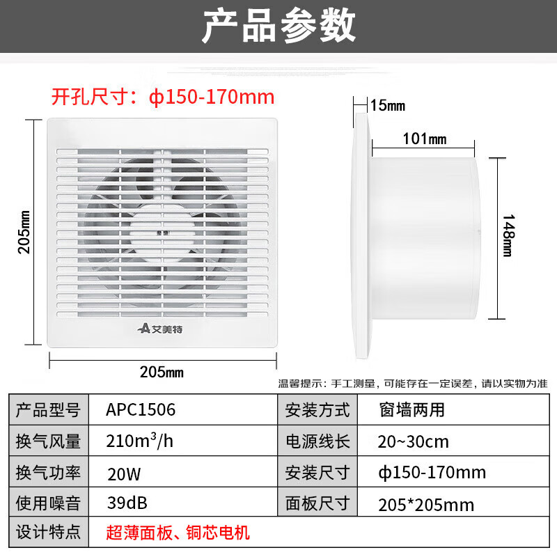 艾美特(Airmate )APC1506 排气扇换气扇卫生间厨房低噪窗式墙用排风扇6寸抽风机价格:99.00元!