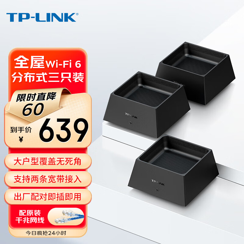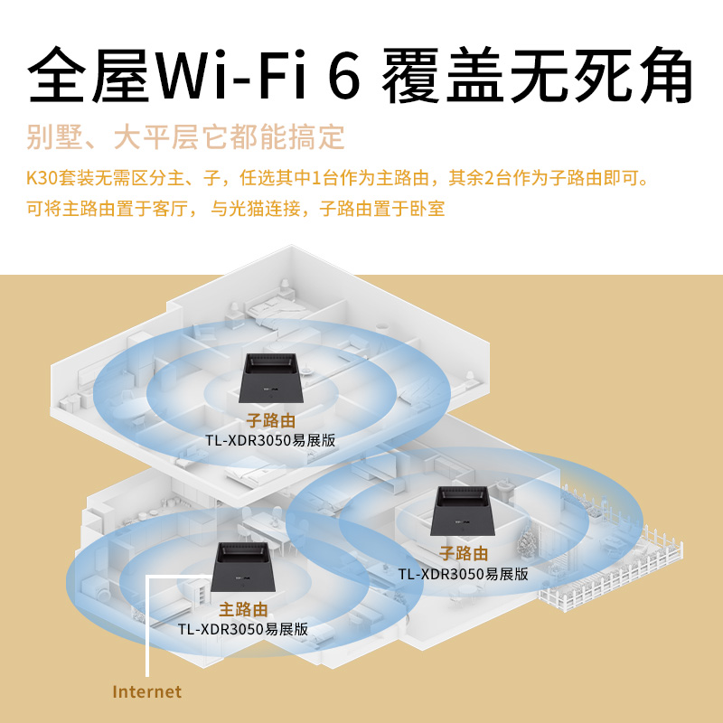 TP-link 全屋WiFi6 子母路由器 AX3000分布式三只装K30 千兆无线双频 别墅大户型易展无缝漫游 即插即用价格:699.00元!