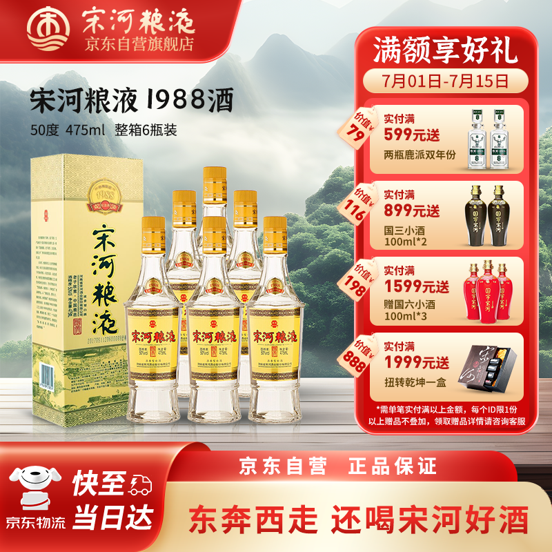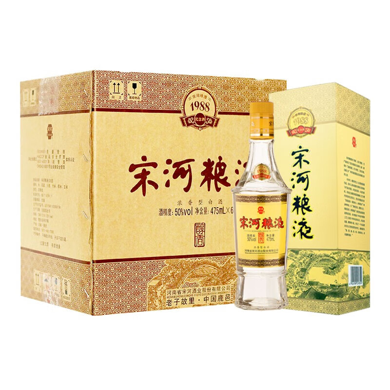 宋河粮液 1988酒 浓香型白酒 50度 475ml*6瓶 整箱装 送礼价格:284.00元!