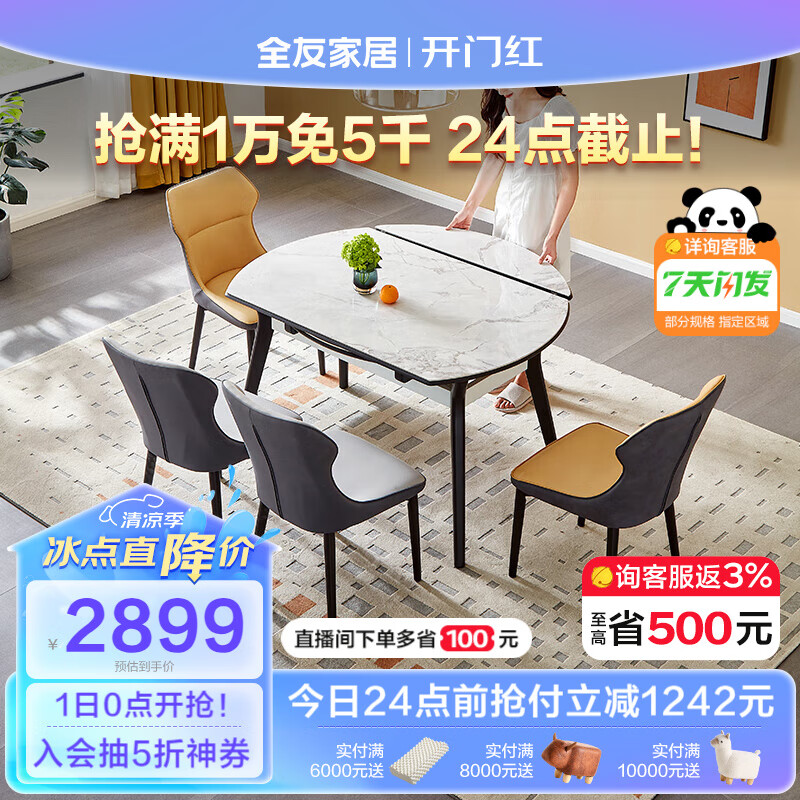 全友家居 现代轻奢岩板餐桌椅餐厅家具可方可圆伸缩折叠餐桌DW1059价格:4141.43元!