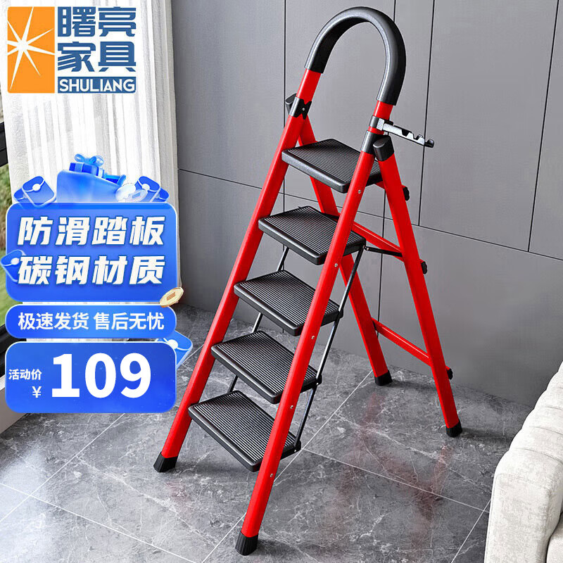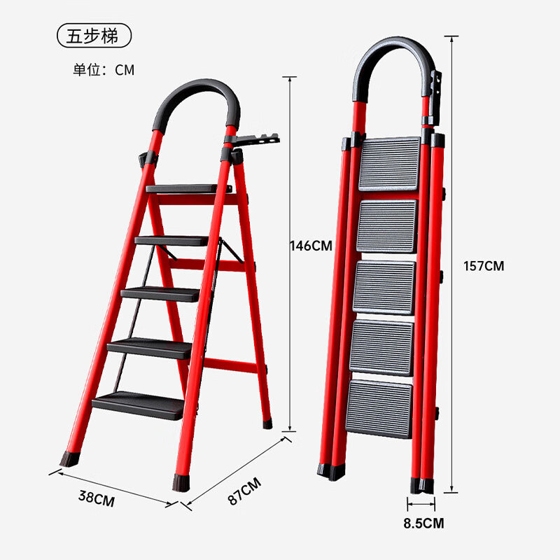曙亮梯子 家用 人字梯 五步梯 工程梯折叠 碳钢加厚 楼梯 乔迁红价格:109.00元!