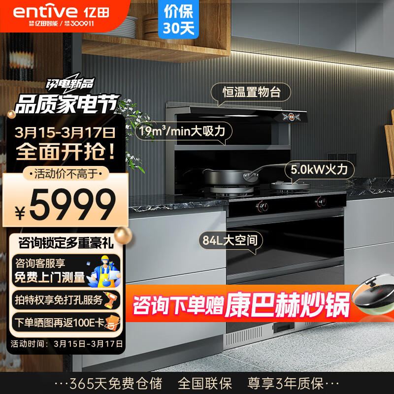 亿田JC3X-A 二消毒集成灶一体灶 家用消毒柜集成灶 高温烘干 挥手智控 左排天然气价格:5999.00元!