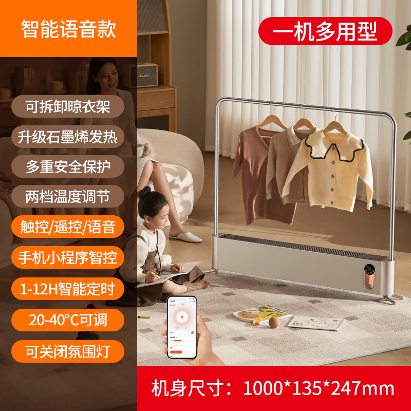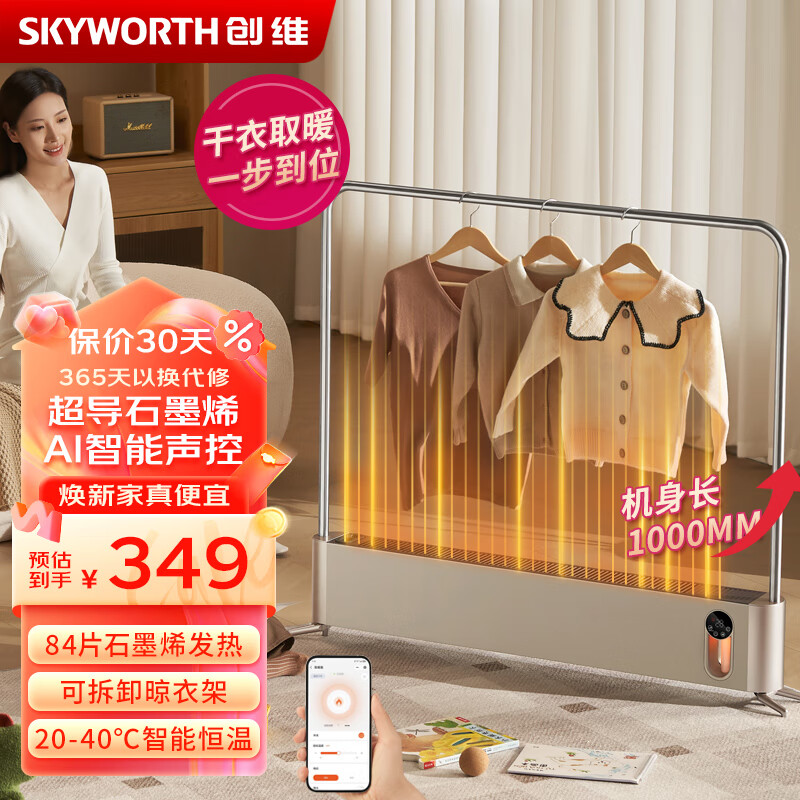 创维(Skyworth)石墨烯踢脚线取暖器智能语音家用节能电暖器电暖气片居浴两用恒温全屋对流移动地暖烘衣机A820价格:419.00元!