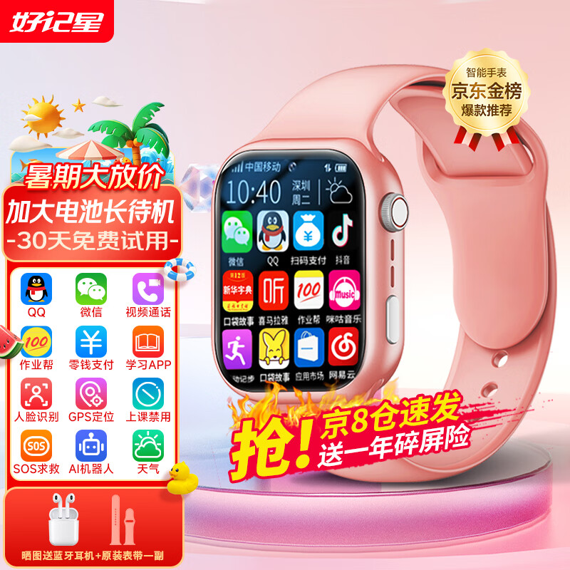 好记星【无游戏长待机】儿童智能电话手表4G通学生青少年初高中精准定位运动级防水可视频智能手表 顶配粉【加大电池+QQ微信+GPS定位+软件下载】价格:319.00元!