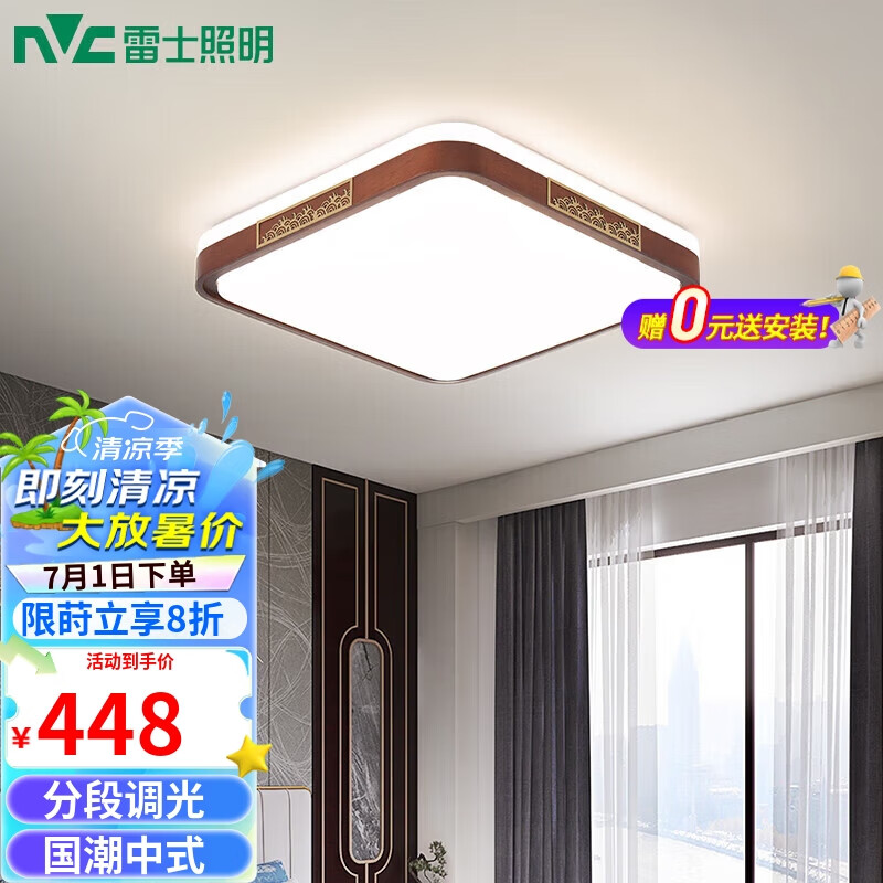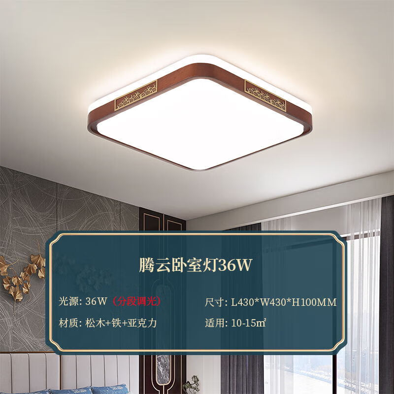 雷士(NVC)LED吸顶灯复古国潮中国风木艺卧室方形灯具超薄灯饰WHXD36F/F-03价格:559.00元!