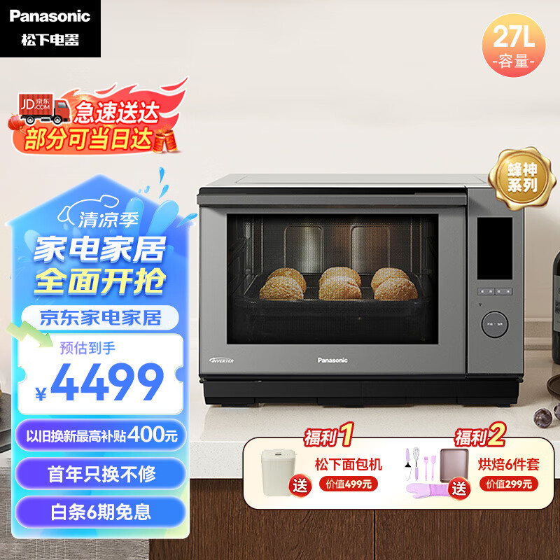 松下(Panasonic)蜂神系列NN-DS2500XPE 27升变频微波炉 微蒸烤炸一体机蜂巢顶聚热彩屏触控 智能APP(WIFI)价格:3999.00元!