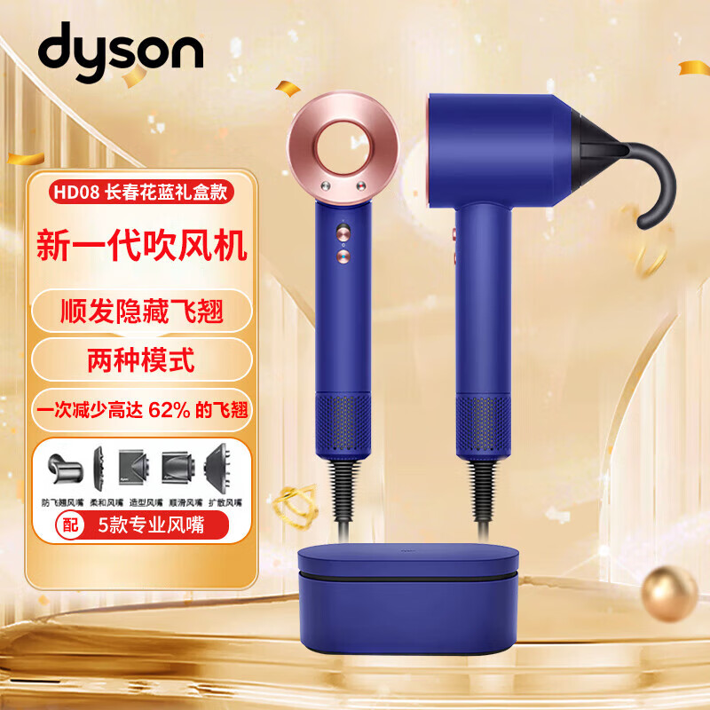 戴森新一代吹风机 Dyson Supersonic 电吹风 负离子 进口家用 礼物推荐 HD08 长春花蓝礼盒款价格:2199.00元!