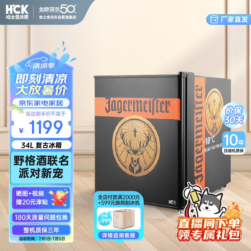 哈士奇哈士奇客厅冰箱母婴家用小型迷你复古冰箱冷藏冷冻婴儿母乳储奶客厅34升BC-46RMC野格酒联名价格:1199.00元!