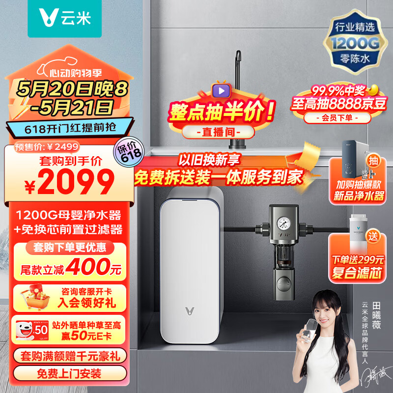 云米(VIOMI)Super Y 1200G全屋净水套装净水器+前置过滤器VF4-A两件套家用直饮净水器净水机MR10102价格:2499.00元!