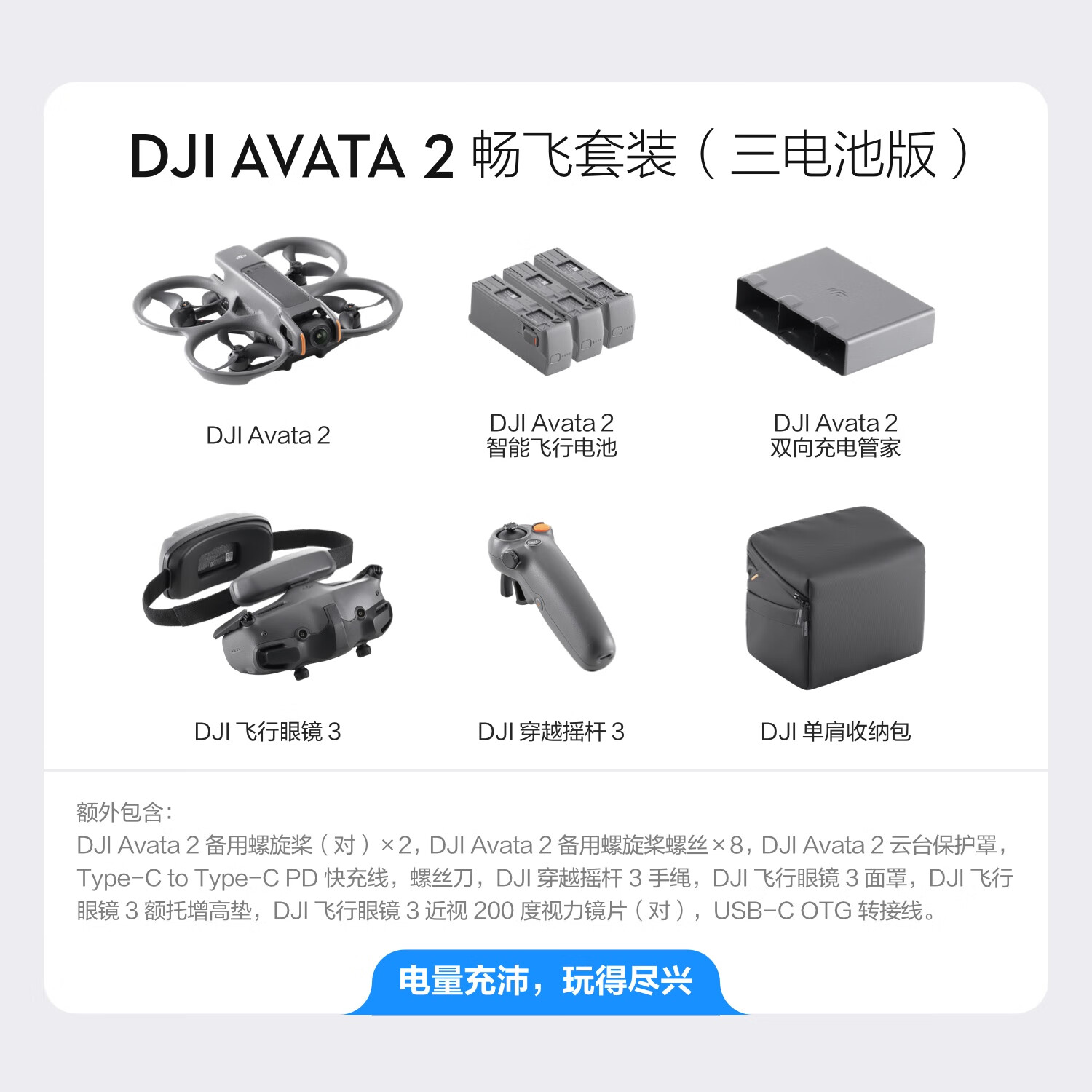 大疆 DJI Avata 2 畅飞套装(三电池版) 视角航拍无人机 飞行眼镜体感操控沉+128G内存卡价格:7082.89元!