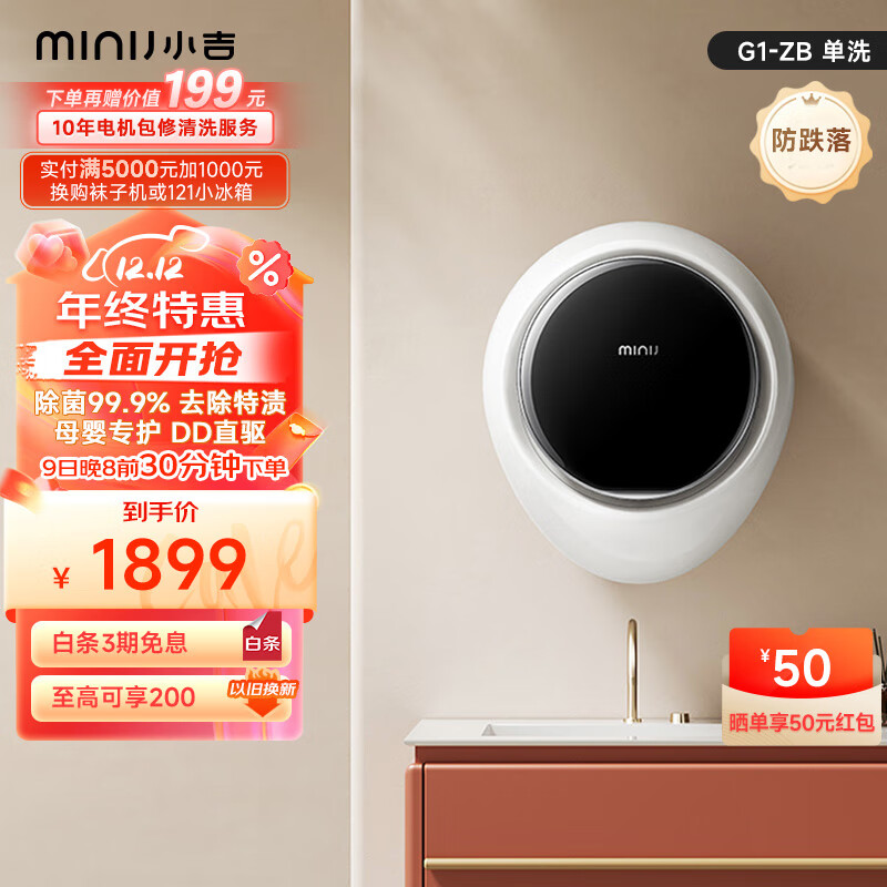 小吉(MINIJ)壁挂洗衣机 2.5公斤壁挂迷你滚筒洗衣机全自动 DD直驱变频 婴儿洗衣机儿童洗衣机 G1-ZB 以旧换新价格:1999.00元!