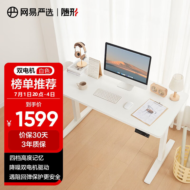 网易严选 电动升降电脑桌 站立办公升降台办公室书桌 白色1200*600mm价格:1999.00元!