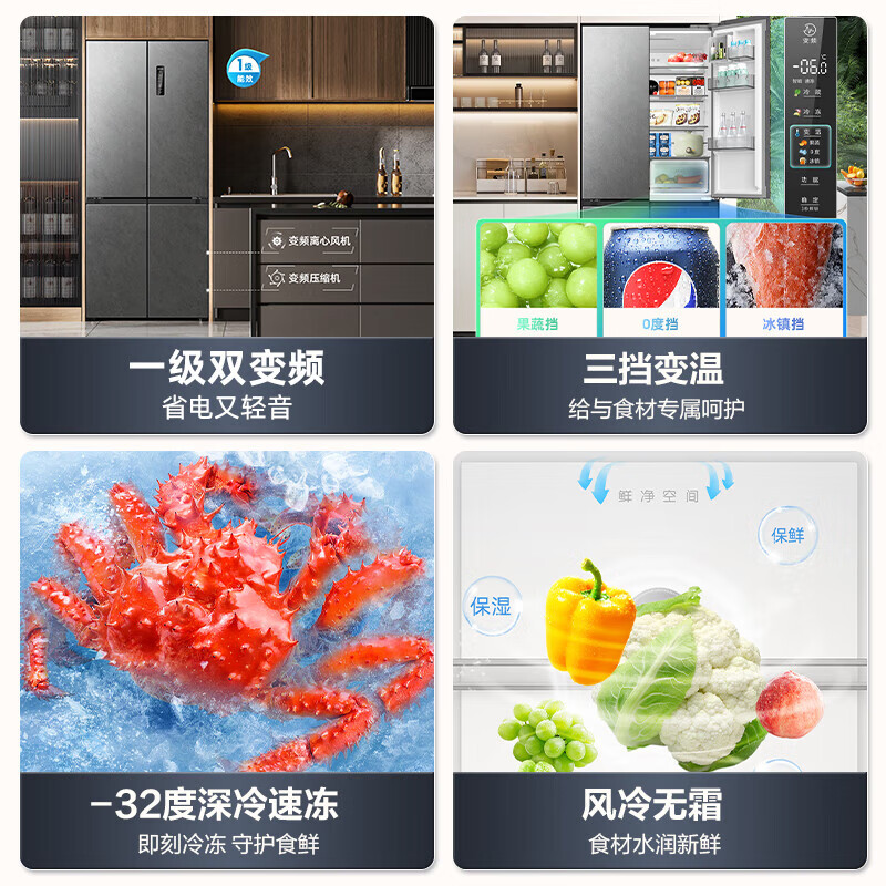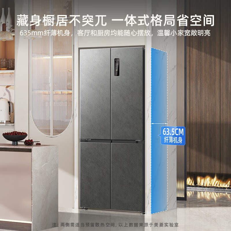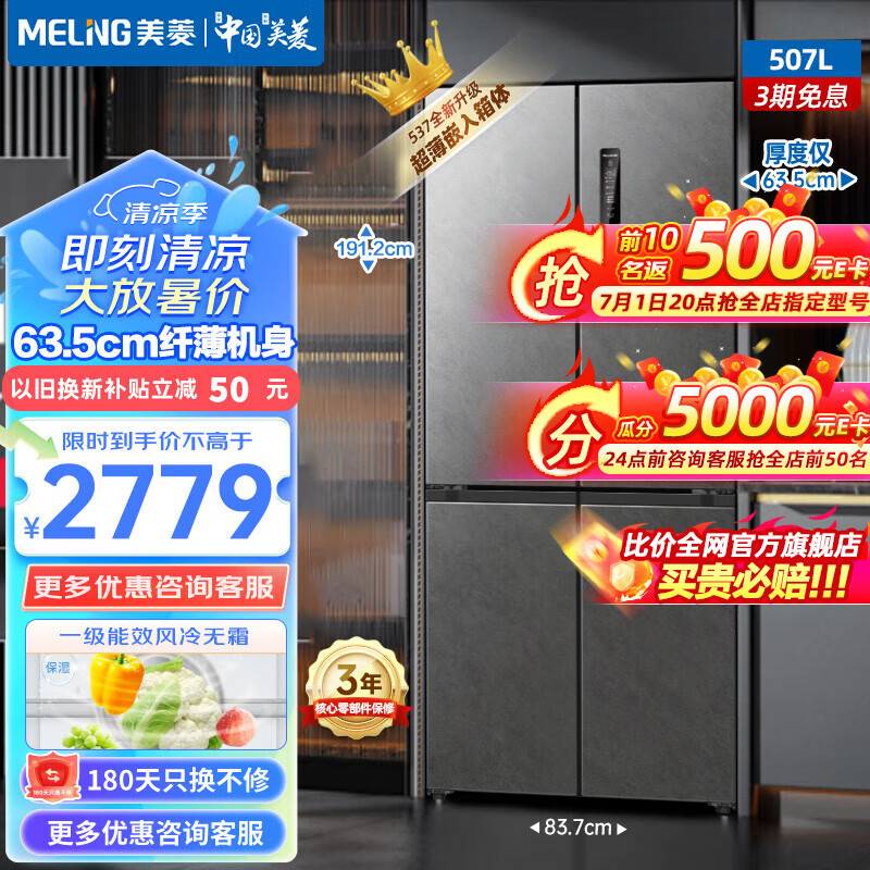 美菱(MeiLing)507升双开门冰箱家用十字对开门超薄嵌入一级能效风冷无霜变频四门电冰箱大容量【537升级款】 BCD-507WP9CX烟雨灰 磨砂面板 超薄嵌入价格:2899.00元!