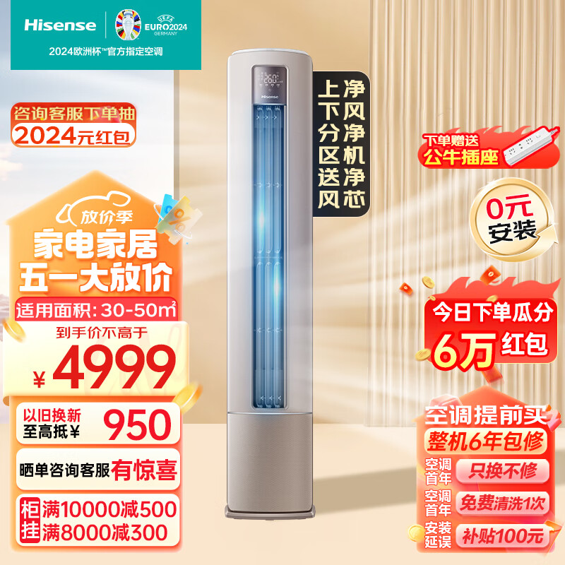 海信(Hisense)空调3匹 健康抑菌 上下分区送风超大风量新一级能效智能AI控温立式客厅柜机 KFR-72LW/S550-X1价格:5099.00元!