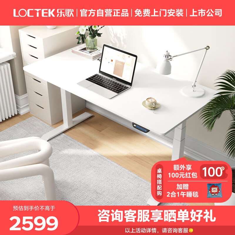 乐歌电动升降桌电脑桌站立办公学习桌写字书桌 E5-N/1.6m雅白色套装价格:2869.00元!