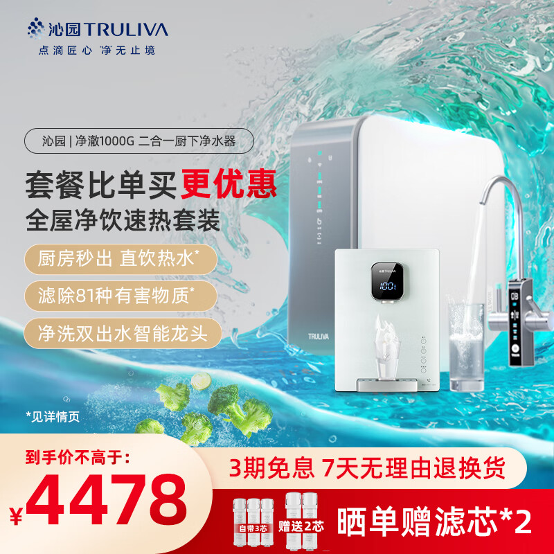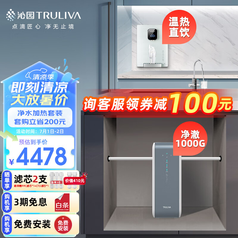 沁园(TRULIVA)净澈双出水1000G二件加热套装 净水器UR-SX51070+加热管线机LNW580-5W价格:4478.00元!