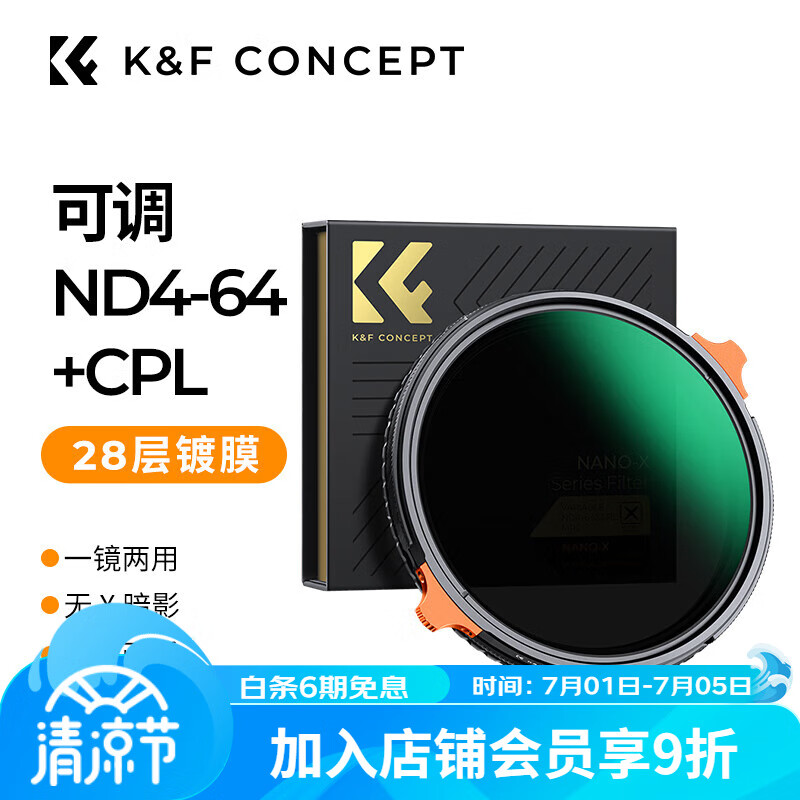 K&F Concept卓尔 可调ND镜CPL镜二合一 ND4-64减光镜28层镀膜多档位调节一镜两用多功能中灰偏振镜62mm价格:508.00元!