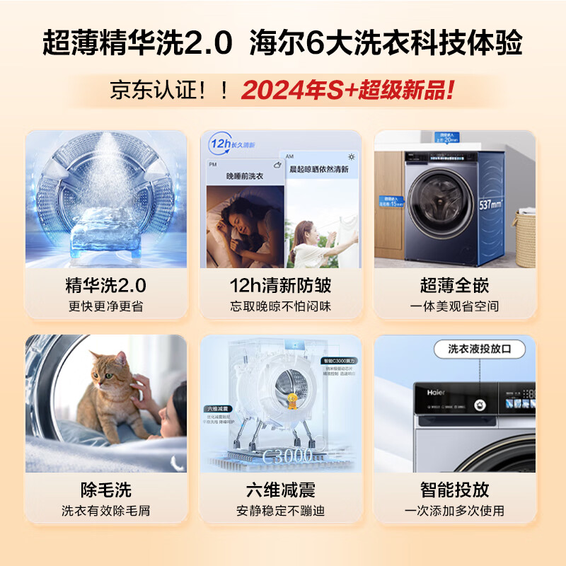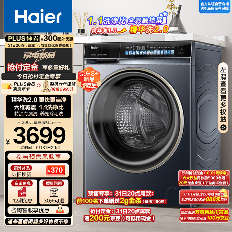 海尔(Haier)滚筒洗衣机全自动 云溪176 10公斤大容量【精华洗2.0EG100BD176L】超薄家用 以旧换新 一级能效价格:3899.00元!