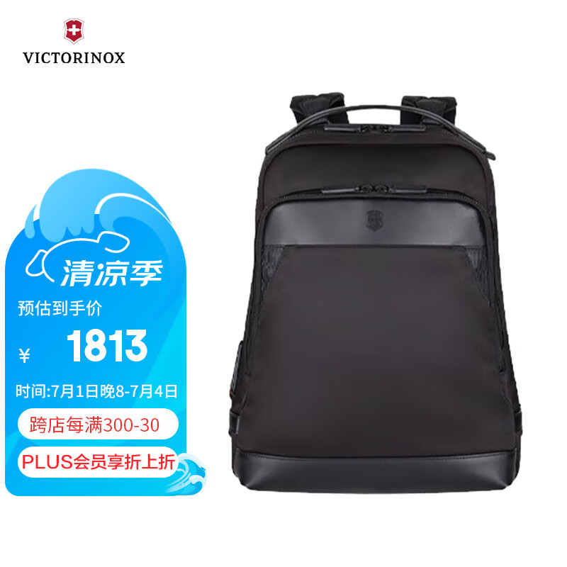 维氏(VICTORINOX)瑞士军刀炫黑铝面男士15英寸商务电脑包出差双肩包611804黑色 价格:1781.70元!