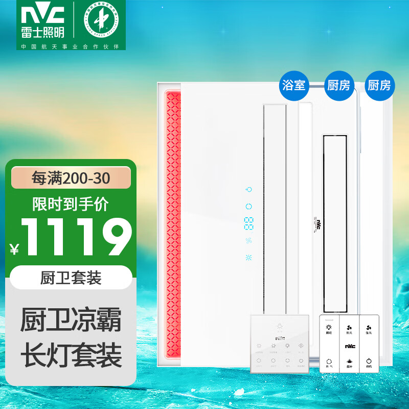 雷士(NVC)米家直流变频暖风机浴室取暖器照明换气一体风暖浴霸厨卫套餐价格:1299.00元!