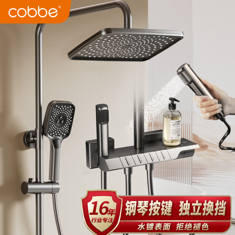 卡贝(cobbe)枪灰卫浴淋浴花洒套装家用淋雨喷头浴室洗澡水龙头全套莲蓬沐浴器价格:708.00元!