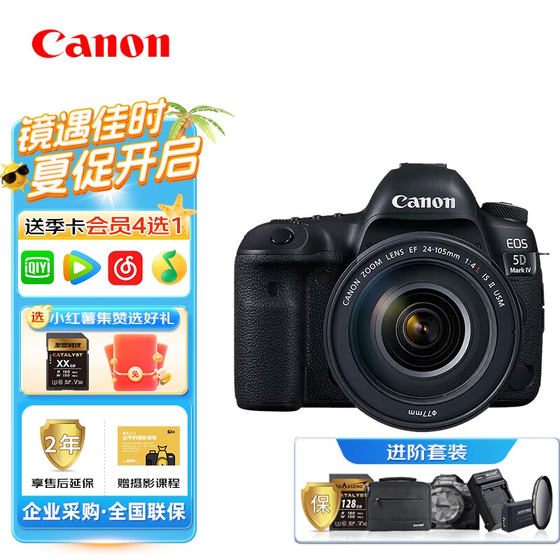 佳能(Canon)EOS 5D Mark IV EF 24-105mm F4L IS II USM二代镜头套机 扫街旅拍套装 价格:22999.00元!