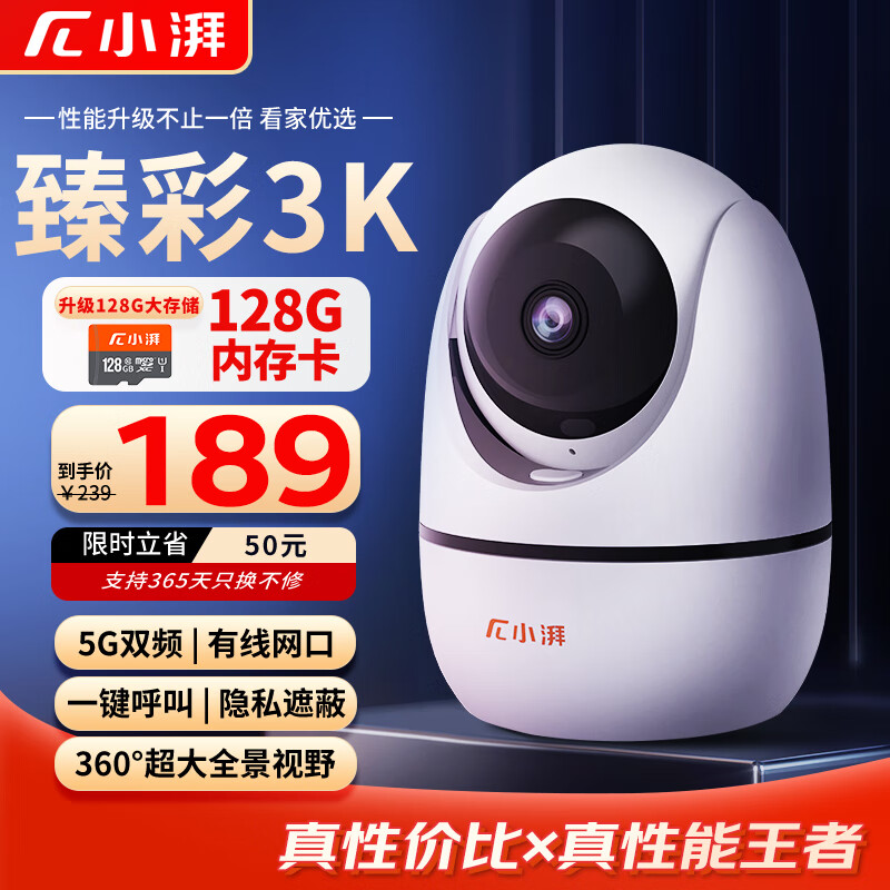 小湃500万极清摄像头家用监控器P50Plus 家庭室内360度无死角带夜视全景 手机远程婴儿看护器宝宝监护器价格:239.00元!