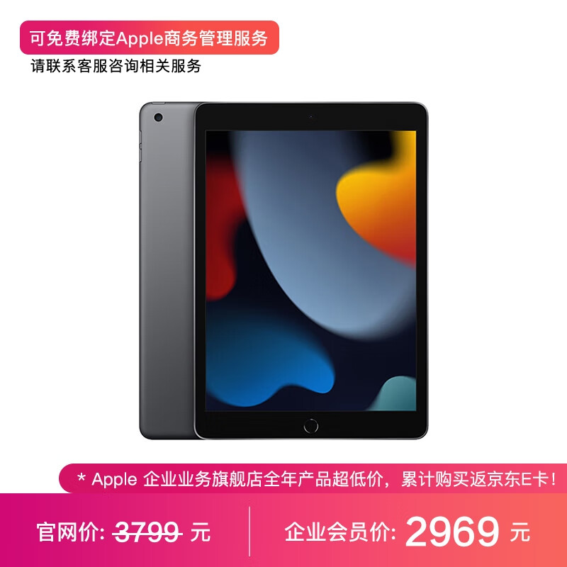 Apple iPad 10.2英寸平板电脑 2021款(256GB WLAN版/A13芯片) 深空灰色 MK2N3CH/A*企业专享价格:3799.00元!