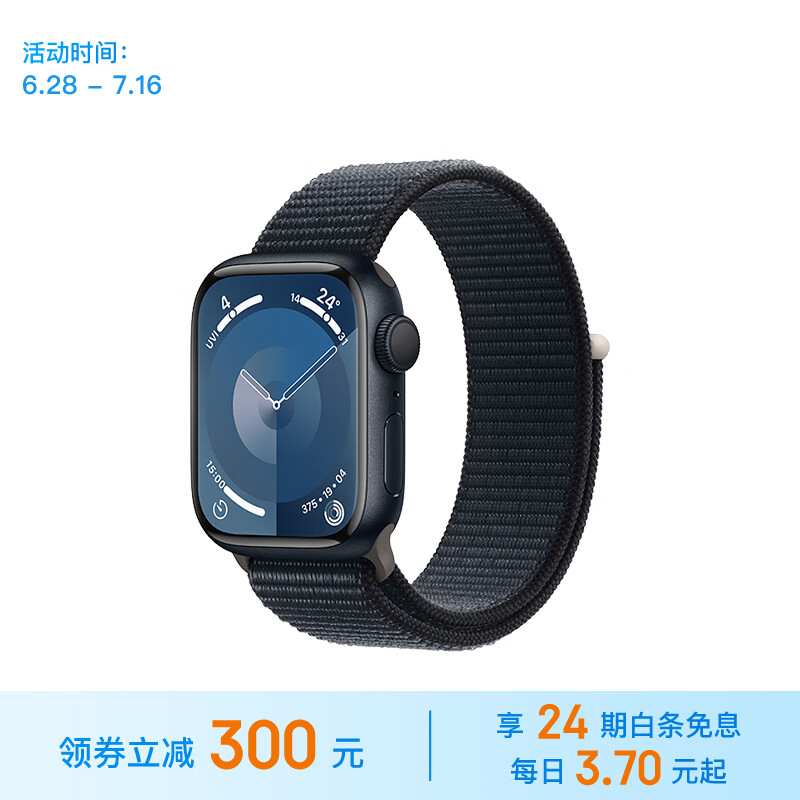 Apple【24期免息】Watch Series 9智能手表GPS款41毫米午夜色铝金属表壳午夜色回环表带MR8Y3CH/A价格:2999.00元!
