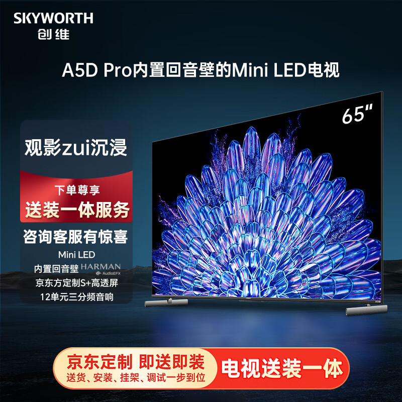 创维电视65A5D Pro 【送装一体版本】65英寸内置回音壁mini led电视机 智慧屏液晶4K超薄平板彩电价格:4638.00元!