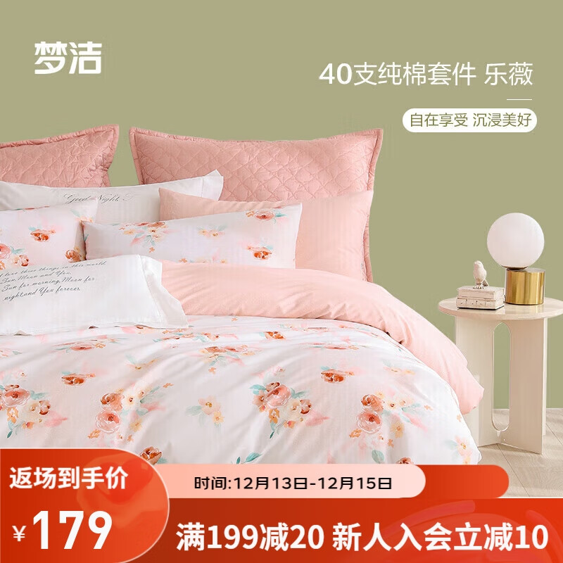 梦洁家纺床上四件套纯棉被套床单四件套床上用品全棉被罩1.8米乐薇价格:289.00元!