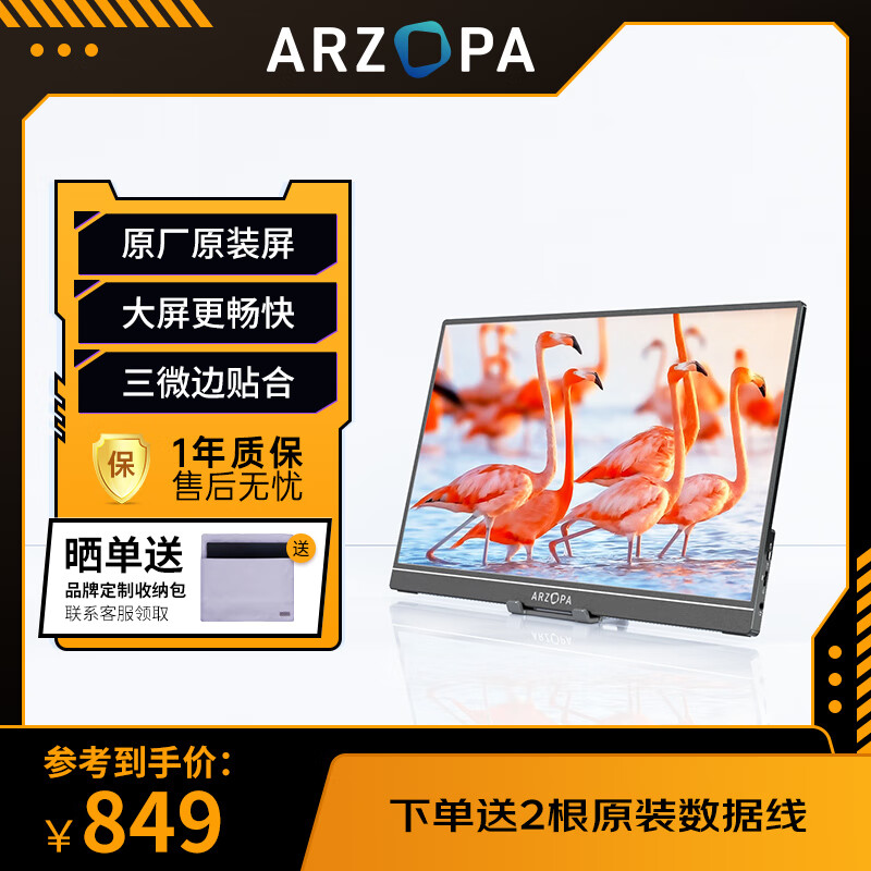 ARZOPA阿卓帕 17.3英寸便携式显示器 三面微边 手机电脑笔记本扩展屏 PS4/5 Switch副屏显示屏 A1 MAX价格:859.00元!