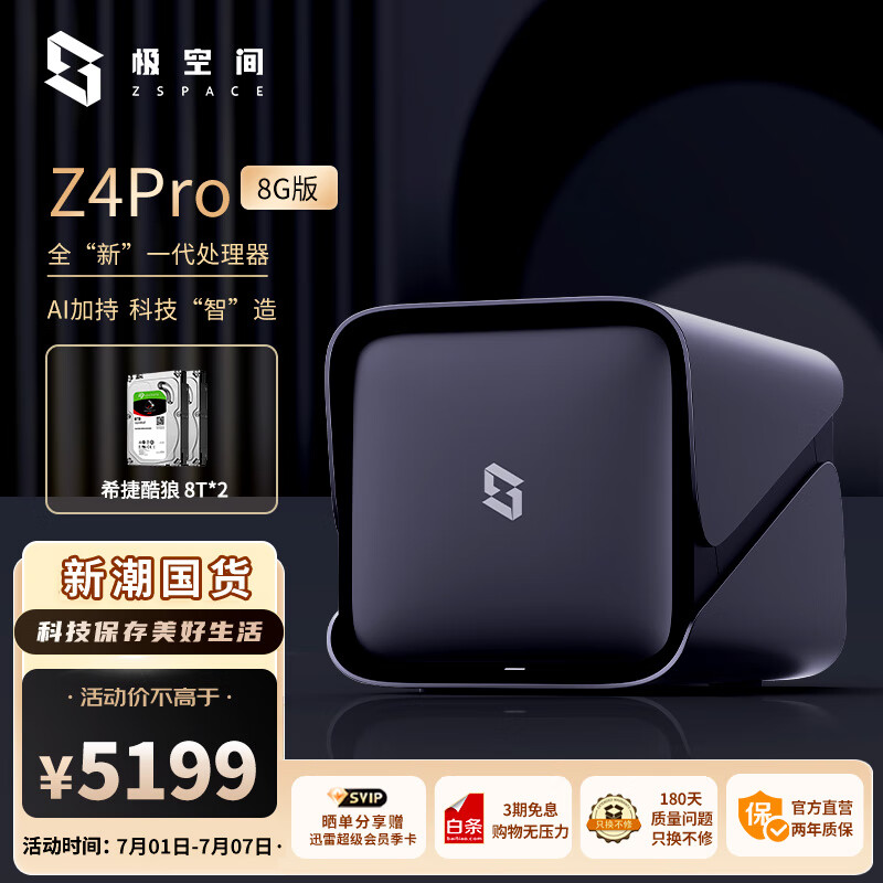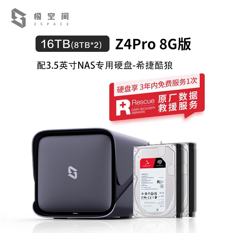 极空间私有云Z4Pro 8G版四盘位Nas网络存储家庭个人云相册备份文件同步【配2块8T希捷酷狼硬盘】钛金灰价格:5699.00元!