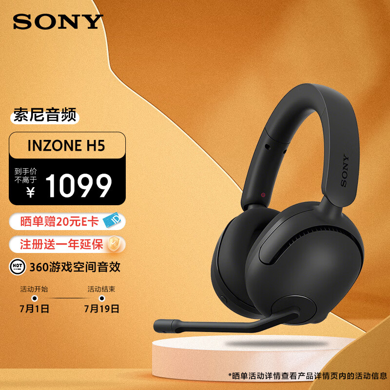 索尼(SONY)INZONE H5 性能之选无线电竞游戏耳机 虚拟7.1 2.4GHz 3.5mm 高清麦克风 电脑耳麦 PS5适配 黑色价格:1099.00元!