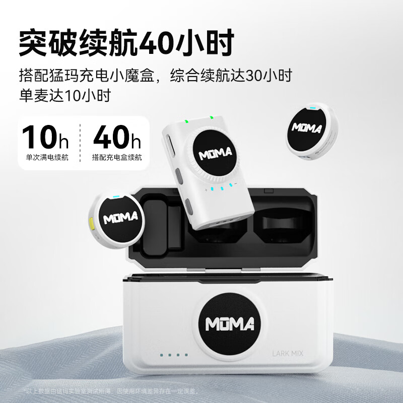 猛玛(MOMA)Lark Mix 一拖二无线领夹麦克风猛犸手机相机直播vlog户外采访微小型纽扣收音麦全能版白色价格:899.00元!