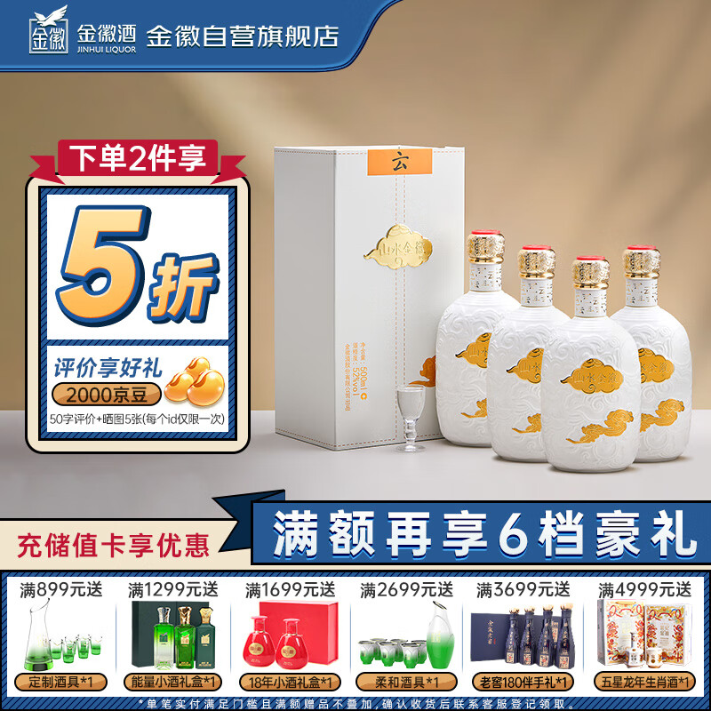 金徽 山水金徽·云 浓香型白酒 52度 500ml*4 整箱装价格:1388.00元!