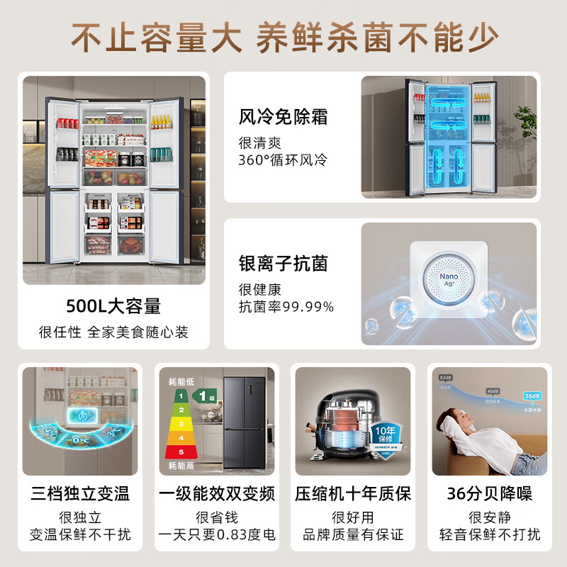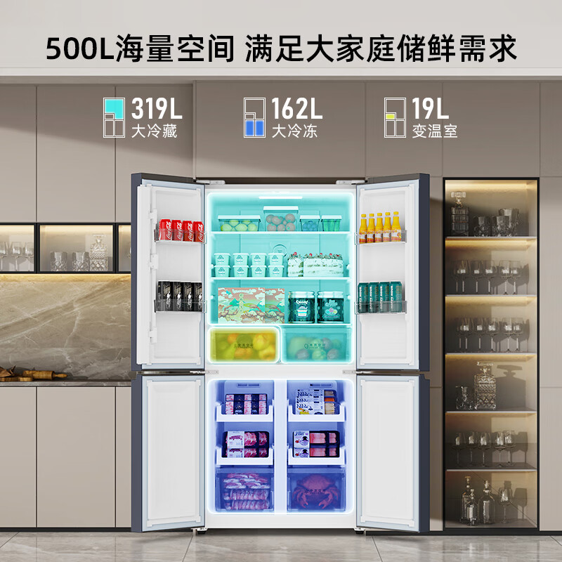 创维光鲜系列500升分区养鲜超薄十字对开四开多门冰箱 双变频一级能效 风冷无霜家用电冰箱WX50PSA价格:1949.00元!