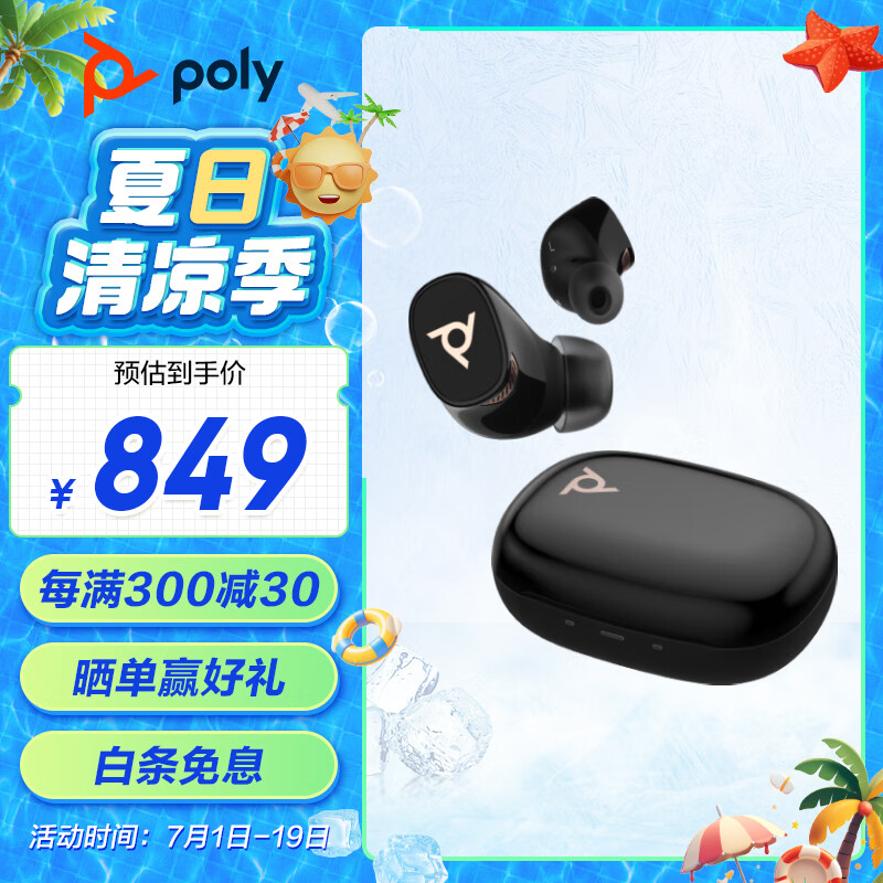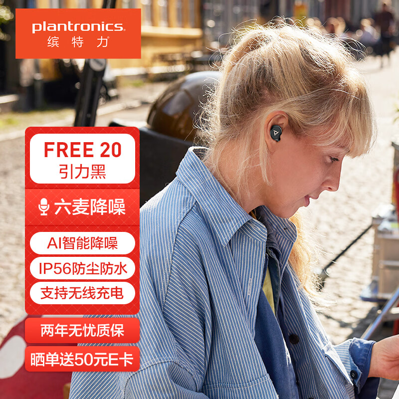 缤特力(PLANTRONICS)POLY 战Free 20 真无线蓝牙耳机 AI混合智能降噪 蓝牙5.4 支持无线充电 IP56级防尘防水 引力黑价格:939.00元!
