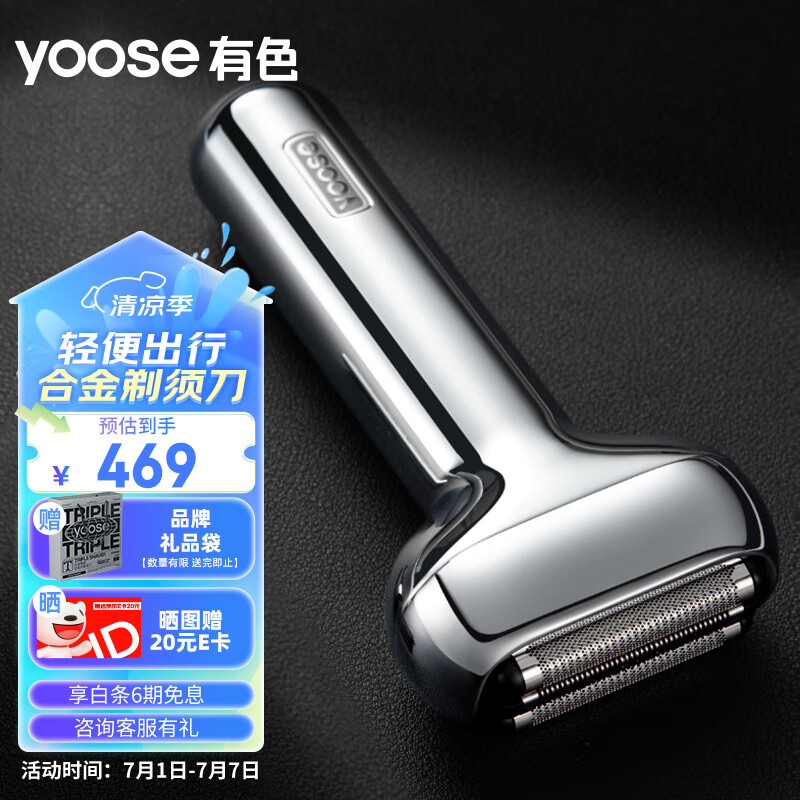 有色(yoose)电动剃须刀 往复式迷你便携三刀头男士刮胡刀 生日七夕情人节礼物送男朋友老公 小彩鲨 电镀银价格:569.00元!