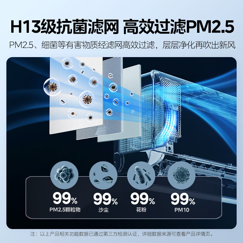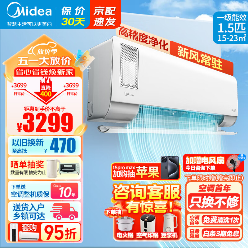 美的新风空调 1.5匹 静新风 新一级能效变频冷暖 独立除湿 壁挂式卧室空调挂机 KFR-35GW/N8XF1-1价格:3299.00元!