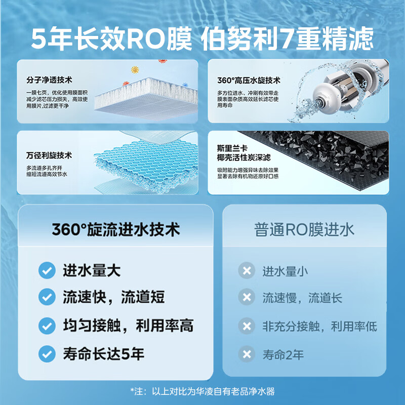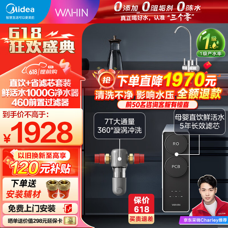 华凌美的出品省芯直饮净水套装【鲜活水1000G+前置过滤器460】家用净水器直饮一体机自来水RO反渗透价格:2028.00元!