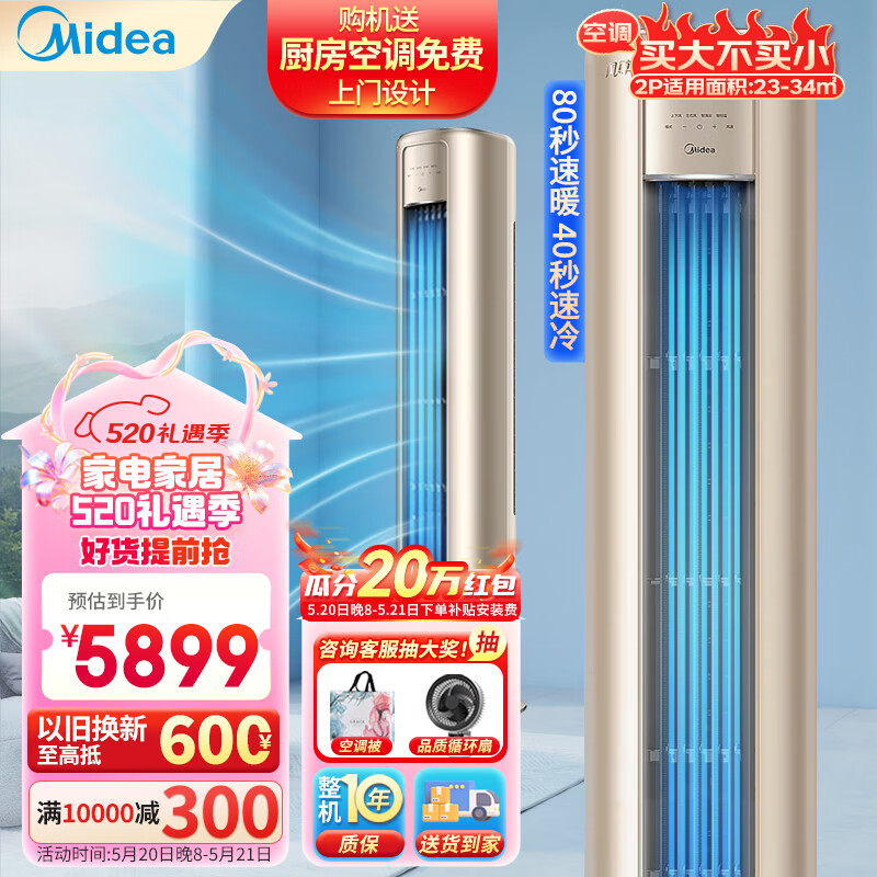 美的(Midea)2匹风尊新一级能效变频冷暖客厅空调立式 圆柱空调柜机京东小家智能家电KFR-51LW/N8MZB1价格:5899.00元!