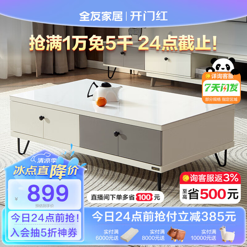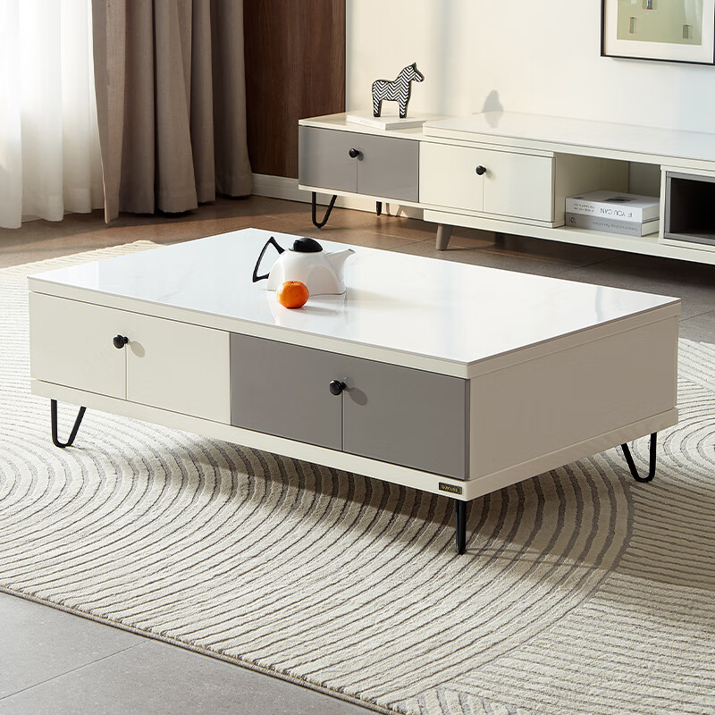 全友家居 现代简约灰白双色地柜岩板台面茶几小户型客厅家具120797A价格:1284.29元!