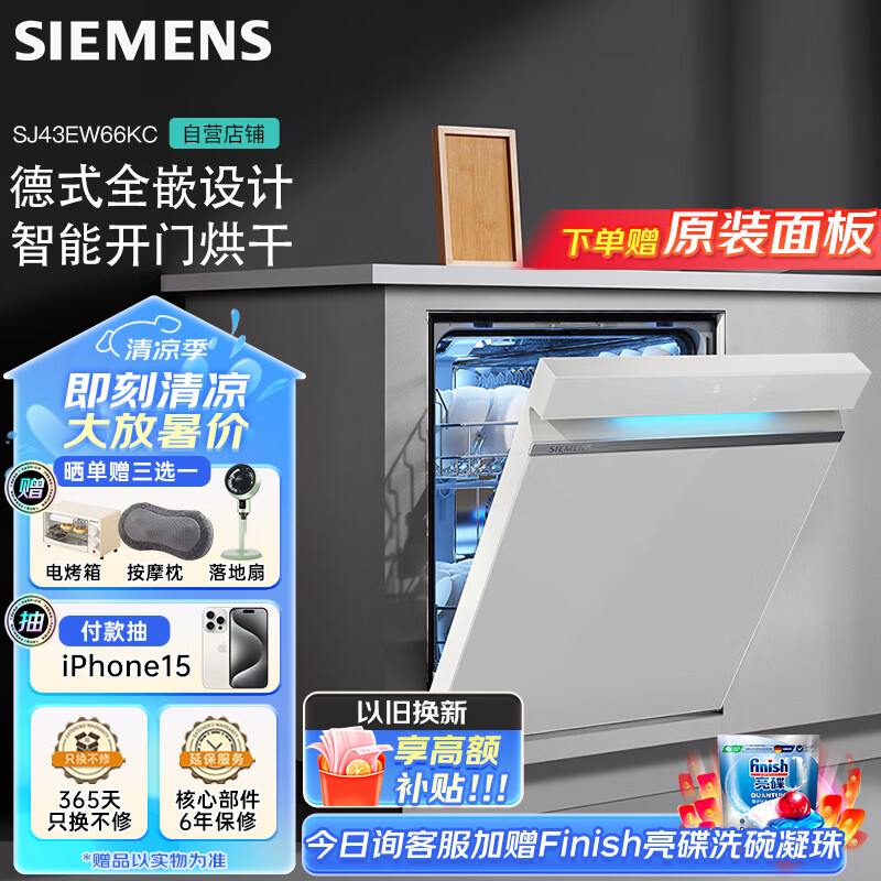 西门子洗碗机14套大容量嵌入式极净魔盒智能开门烘干强劲除菌家居互联五层喷淋洗碗机SJ43EW66KC带面板价格:5989.00元!