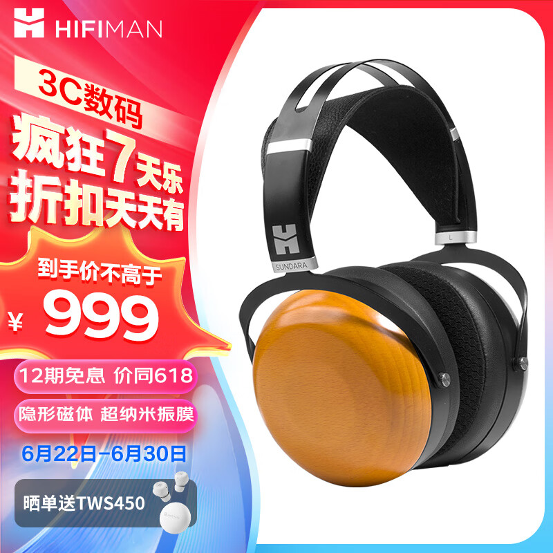 HIFIMAN(海菲曼)SUNDARA-C隐形磁体封闭式平板振膜HIFI头戴式电脑音乐吃鸡游戏耳机 价格:999.00元!