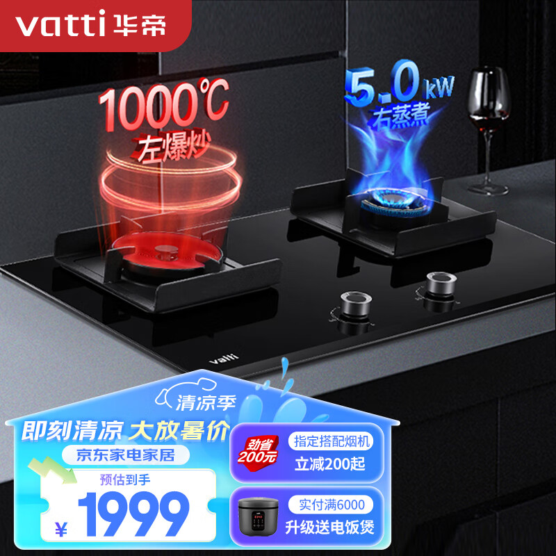 华帝(VATTI)燃气灶(天然气)家用鸳鸯灶双灶具 70%热效率 分区烹饪 5.0kW猛火 钢化玻璃 JZT-i10062B价格:1999.00元!