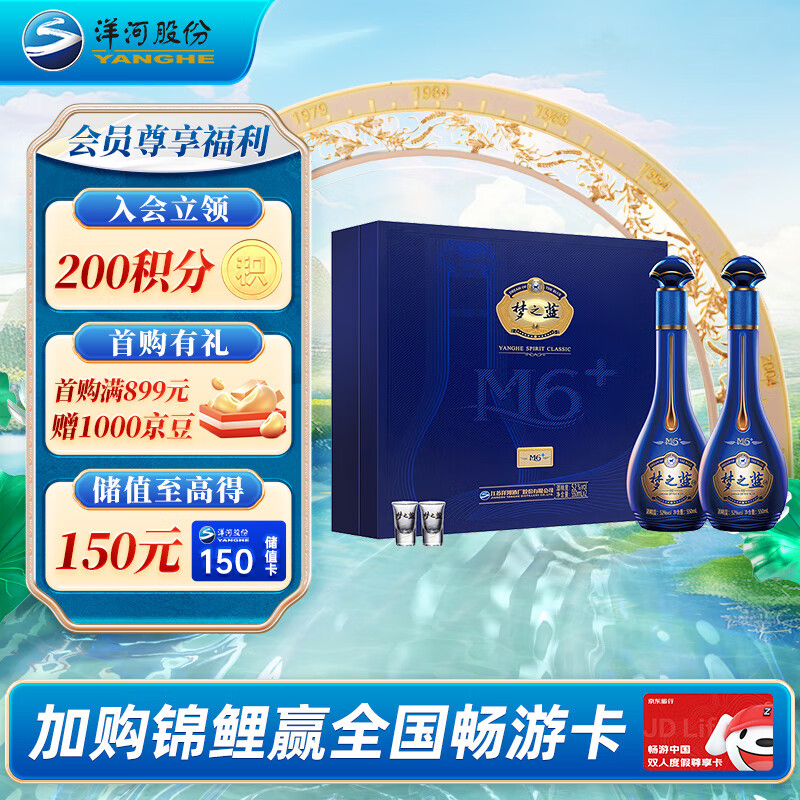 洋河 梦之蓝M6+ 52度 550ml*2瓶 礼盒装 绵柔浓香型白酒价格:1848.00元!