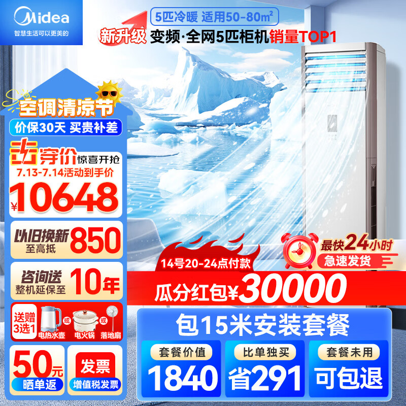 美的(Midea)中央空调5匹柜式空调 5p商用柜机立式 冷暖新能效变频380V包15米铜管RFD-120LW/BSDN8Y-PA401(B3)A价格:10648.00元!