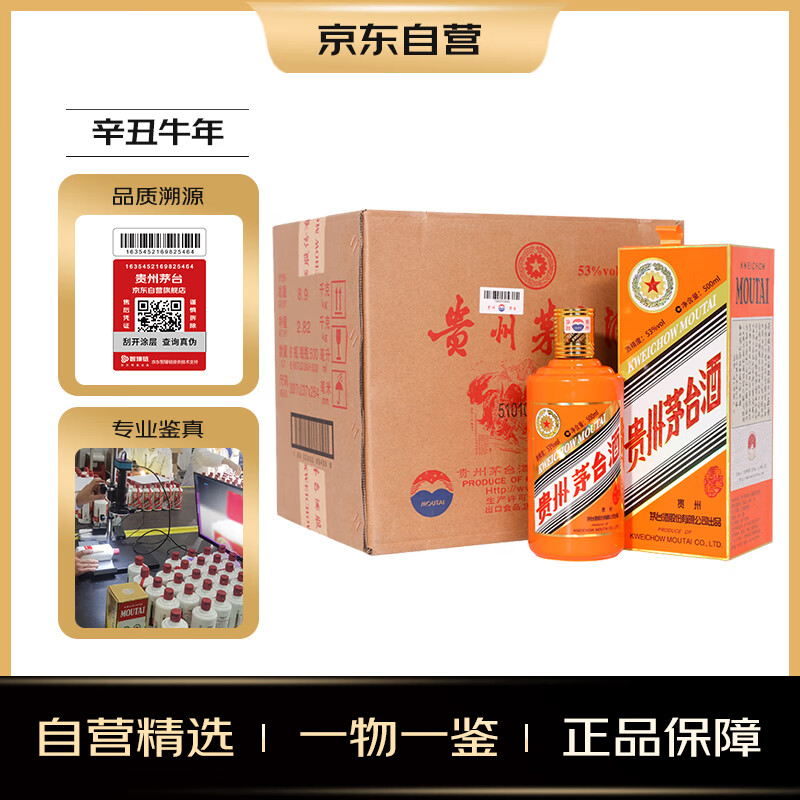 茅台(MOUTAI)生肖纪念 辛丑牛年 酱香型白酒 53度 500ml*6 整箱装价格:21999.00元!